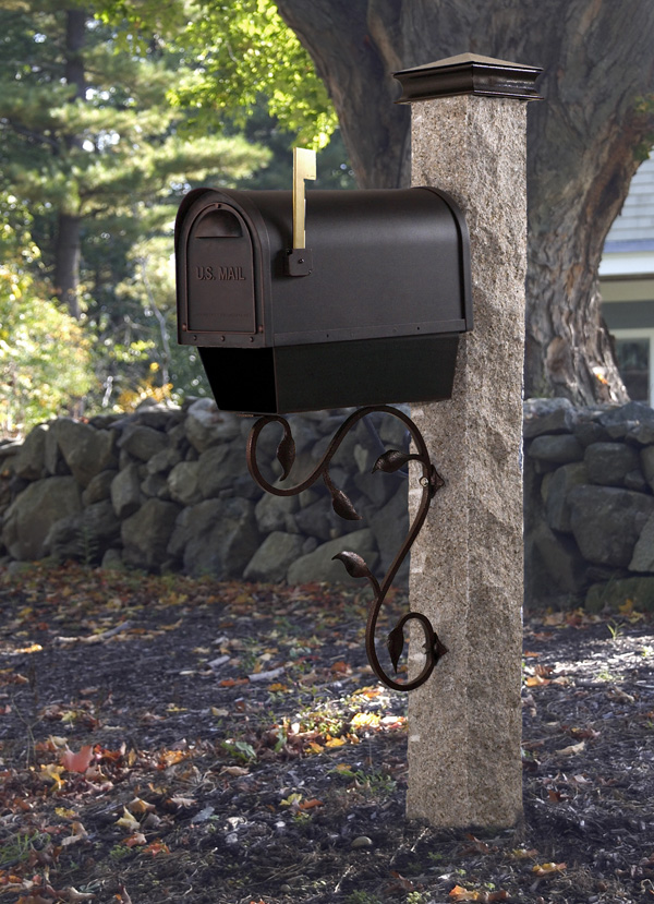 Wheat Granite Post 6” X 6” X 7’ Cast Aluminum with Stainless Steel Hinges, Brass Flag and Magnet Latch and Newspaper Tube Colors Available: Copper